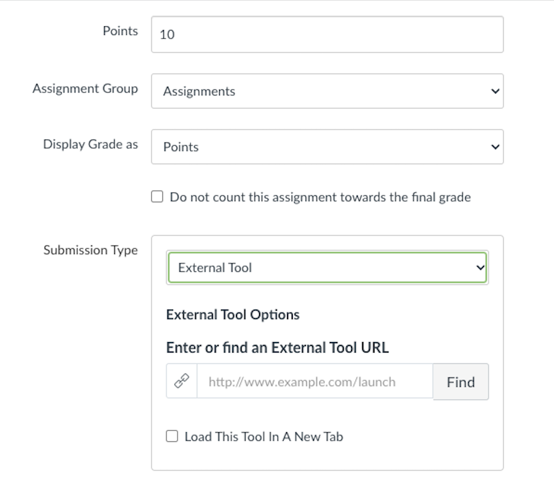 - Complete the remaining assignment information in Canvas and select Save & Publish to give students access.
